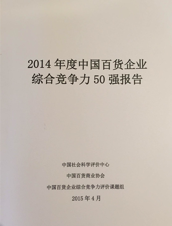 第13屆中國百貨業高峰論壇上,中國社會科學評價中心課題組發布“2014年度中國百貨企業綜合競爭力50強報告”。