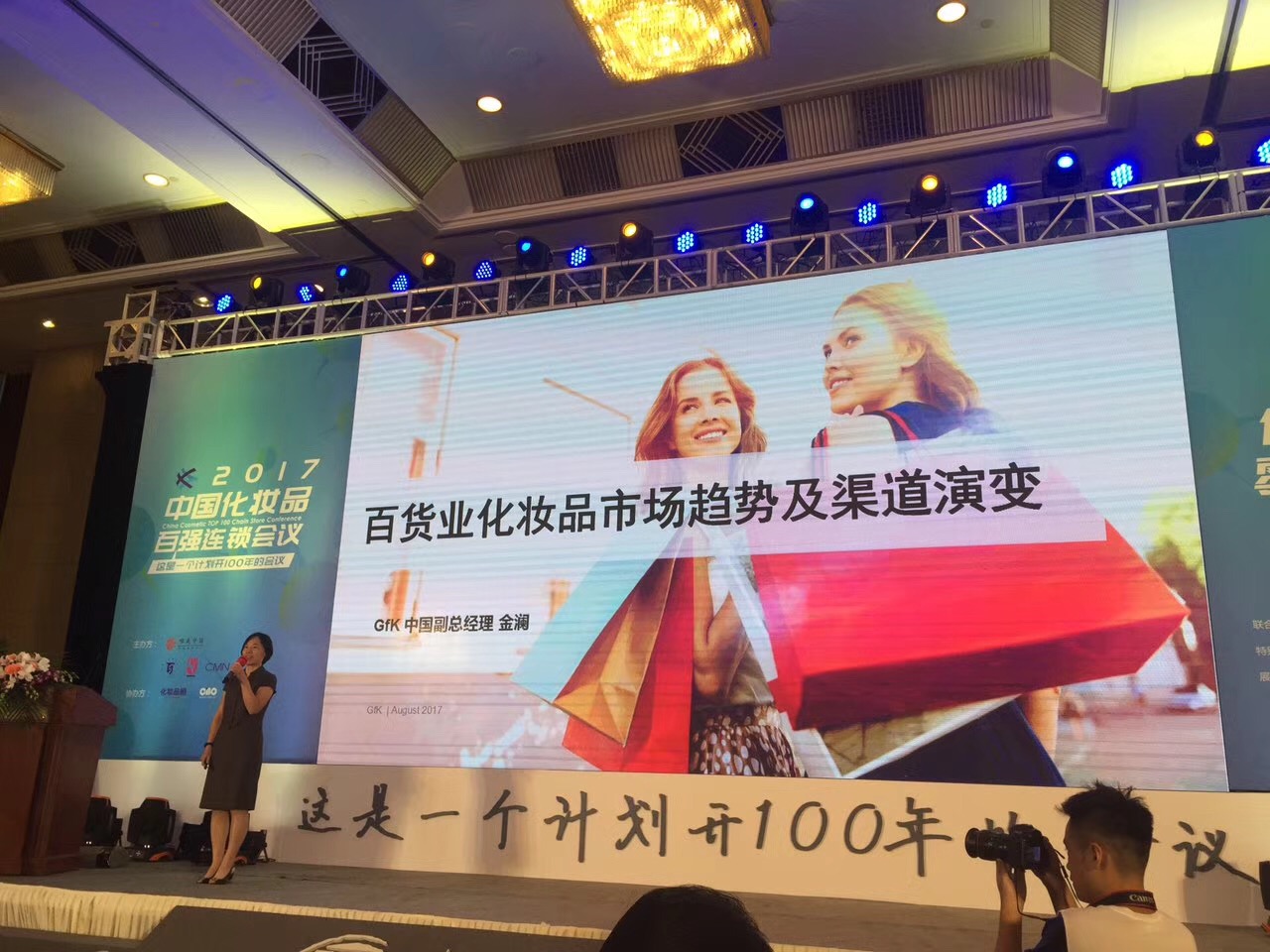 和去年一樣,權威數據分析機構,捷孚凱市場咨詢(中國)有限公司副總經理金瀾為與會嘉賓呈現了2017年百貨業化妝品市場趨勢及渠道演變,為整個化妝品產業鏈帶來最新的市場數據和深入的市場洞察。當前化妝品在百貨渠道呈現四大趨勢,分別為高端品牌成為增長引擎、抗衰老功效產品穩步增長、彩妝市場強勁發展、化妝品加速布局購物中心。據GfK監測數據顯示,2017年上半年化妝品整體零售額同比2016年上半年增長10.5%,其中高端品牌的份額進一步提升,在護膚以及彩妝領域市場份額分別提升至52.9%和63.7%。在渠道方面,化妝品加速進駐購物中心正成為一種趨勢,各品牌利用快閃店或者跨界經營等不同形式拉近與消費者的距離。