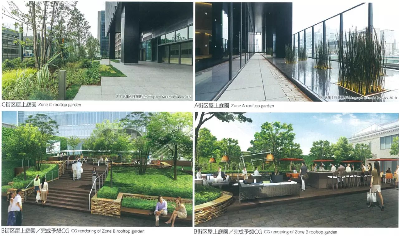 日本橋高島屋的新館與本館、東館三座建筑頂端相連,分別在屋頂設置了屋頂花園的空間,因為有了連橋相通,顧客可以在這片綠色的空間里放松休憩、交流溝通、鍛煉運動,充分享受城市氧吧的樂趣。