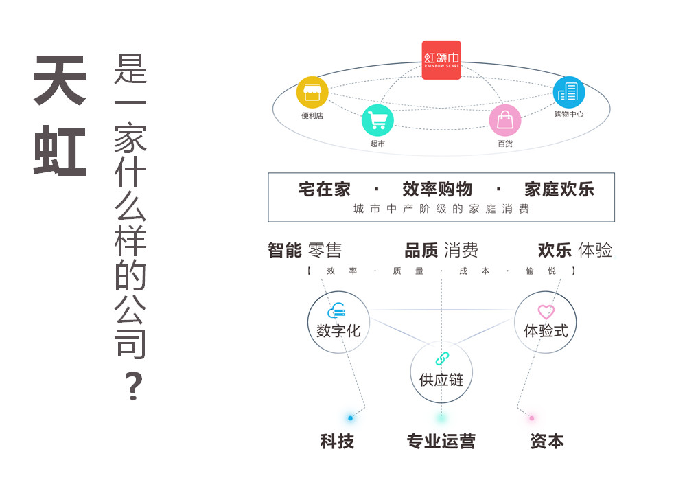 我介紹一下天虹主要的思想,我們整個戰(zhàn)略框架和發(fā)展路徑,天虹在業(yè)務(wù)發(fā)展上是基于消費升級,包括我們在講這一輪商業(yè)模式的轉(zhuǎn)變和商業(yè)模式的升級,還有百貨轉(zhuǎn)型的根基是基于這一輪順應(yīng)消費升級,為消費者提供內(nèi)容和形式上的改變,是基于消費升級的改變。同時在整個商業(yè)模式上去思考如何去提高利用數(shù)字化,利用整個提高運(yùn)營效率,提升我們整個價值鏈的效能。