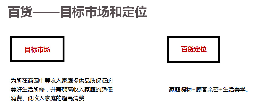 首先我們做了一個比較大的一件事情,我們整個天虹是圍繞家庭購物、顧客親密和生活美學(xué),這是我們天虹百貨的核心定位,基于這個大的框架下的定位,我們基于不同的市場,我們針對不同的商圈、消費者,我們在深圳有30多家門店,其實我們也會發(fā)現(xiàn)在不同的區(qū)域市場上,顧客的消費也會有一定程度的差異性,特別是我們現(xiàn)在天虹也有一線城市,也有三四線城市,我們也發(fā)現(xiàn)不同的市場雖然叫天虹百貨,但是區(qū)域市場定位差異、消費能力、消費特征還是有很大的差異,所以我們在整個定位上,有一套比較完善的定位技術(shù)。當(dāng)然剛才王總講關(guān)于大數(shù)據(jù)的一些運(yùn)用,其實未來對我們天虹在定位技術(shù)上還有一個更好的啟發(fā)。
