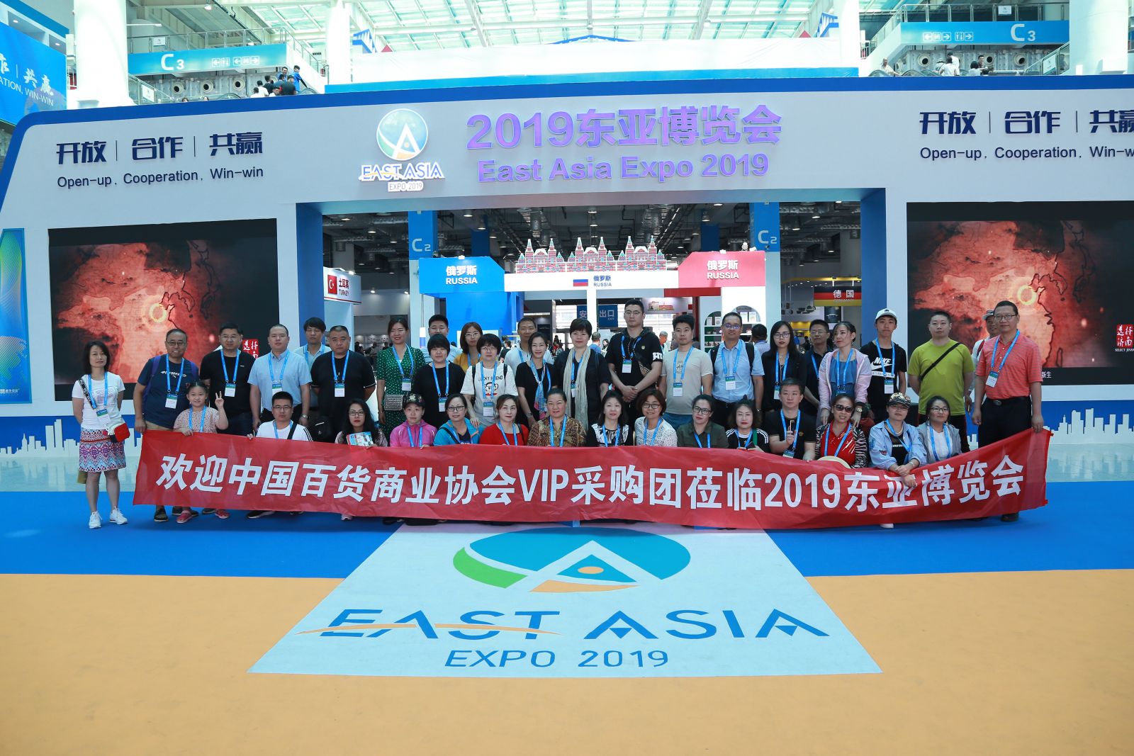 2019年7月5日,中國百貨商業(yè)協(xié)會組織零售企業(yè)70余家,專業(yè)采購商150余人,走進在濟南高新國際會展中心舉辦的2019東亞博覽會,與境外展商進行精準對接及洽談工作。
