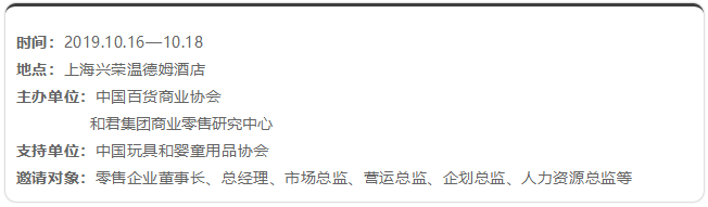 10月16日-18日,中百協2019年度零售研究分享會在上海舉辦,和君集團高級合伙人、和君零售事業(yè)部負責人、和奕咨詢創(chuàng)始人丁昀將以豐富主題街區(qū)案例,教學主題街區(qū)正確的打開方式,期待您的加入。