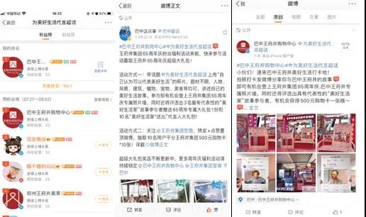 在宣傳上,聯(lián)合本地網(wǎng)紅大V一起積極參與集團在微博、抖音發(fā)起的話題打榜;抖音話題#美好都in王府井總播放量310.3萬,其中巴中王府井的一條抖音貢獻198.7萬播放量,其點贊量高達5.3萬;與此同時,在2F打造了美好生活打卡地,官方微博連同本地微博大V一起持續(xù)為話題打榜,自超話創(chuàng)建以來連續(xù)6周榮登粉絲榜排名第一,并評選為話題小主持人,下一步將優(yōu)化項目的美好生活打卡地,邀請更多的顧客積極參與微博超話打榜,線上線下多渠道、多形式為集團65周年慶宣傳造勢。