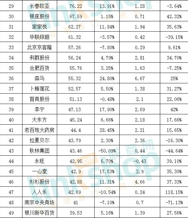 但從上市公司的數量來看,占社零總額三分之一強的市場份額,一部分通過在線銷售來實現,大部分通過線下超商企業來實現,但此類上市公司只有15家,實在太少。在未來,很多優質的區域零售商都應該鼓勵上市,讓他們通過上市發展得很有實力,更規范,更有發展后勁,并向周邊區域拓展,或發展成為全國性連鎖品牌,或成為一個地區的主導企業。