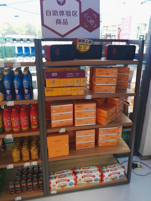 從格局上看,該店區(qū)域劃分并不明顯,只是從裝修風(fēng)格上與易捷便利店有差別,同時(shí)設(shè)置自助購(gòu)物專區(qū),與易捷便利店劃分開來(lái)。