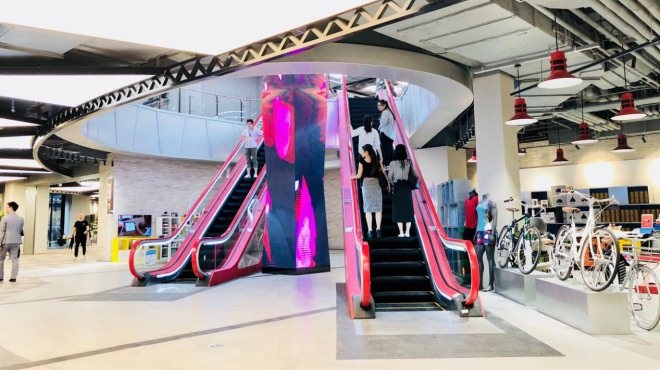 項目尚處于低調(diào)的試營業(yè)階段,超1000平方米的巨型中庭及類似體育場館的大屏幕是項目一大亮點,且看項目正式開業(yè)后如何運營發(fā)揮中庭及大屏幕優(yōu)勢。
