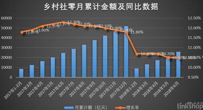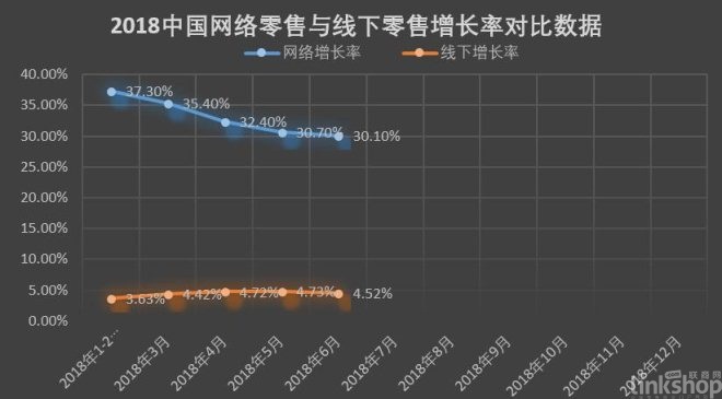 另一方面,電商與實體的融合也讓實體零售開始了緩慢的復蘇。據《聯商網》統計,2018年1-6月,線下零售累計額同比增長4.52%,雖比1-5月回落0.21個百分點,但比年初有了明顯的復蘇跡象。