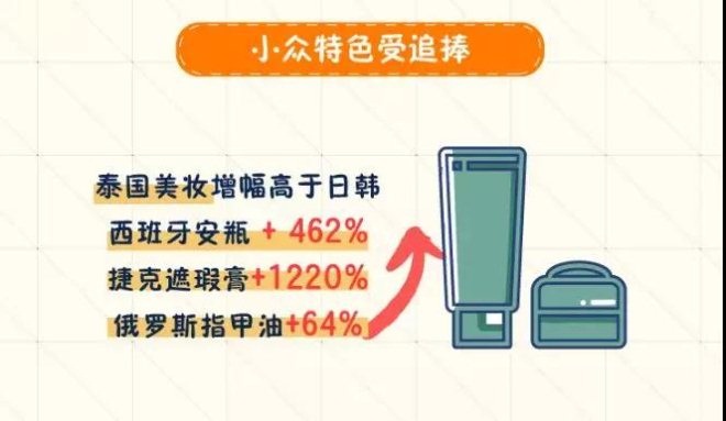 首先,有特色的小眾品牌具備了明星潛質(zhì)。比如說,一提到美妝品牌,我們第一個(gè)想到的是美日韓等國的知名品牌,但白皮書顯示,西班牙的安瓶增長高達(dá) 462%、捷克的遮瑕膏增長1220%、俄羅斯的指甲油增長達(dá)64。小眾品牌“逆襲”起來原來這么恐怖?