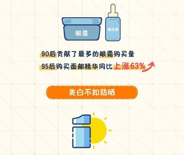 其次,抗初老被90后提上了日程。白皮書顯示,90后已經(jīng)走在了抗初老的第一線,其中,購買眼霜最多的是90后,購買面部精華增速最快的是95后,同比增長高達(dá)63%,為了推遲“再見青春”,敢說敢做的90后在抗初老上果然“讓我疲憊卻永不后悔”。