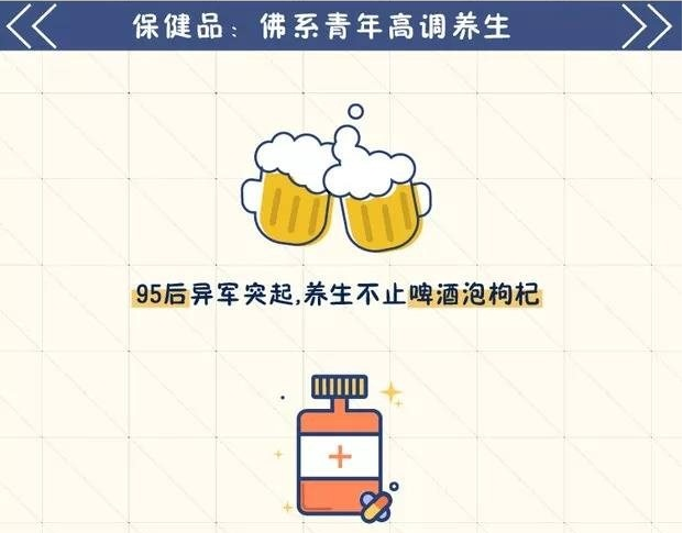 隨著95后的異軍突起,生活不止眼前的啤酒泡枸杞,還有遠(yuǎn)方的保健品和膠原蛋白。