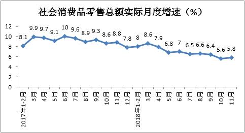 從實際增速來看,1-11月份累計增長7%,增速較1-10月份放緩0.2個百分點。其中11月份同比增長5.8%,增速較上月回升0.2個百分點。