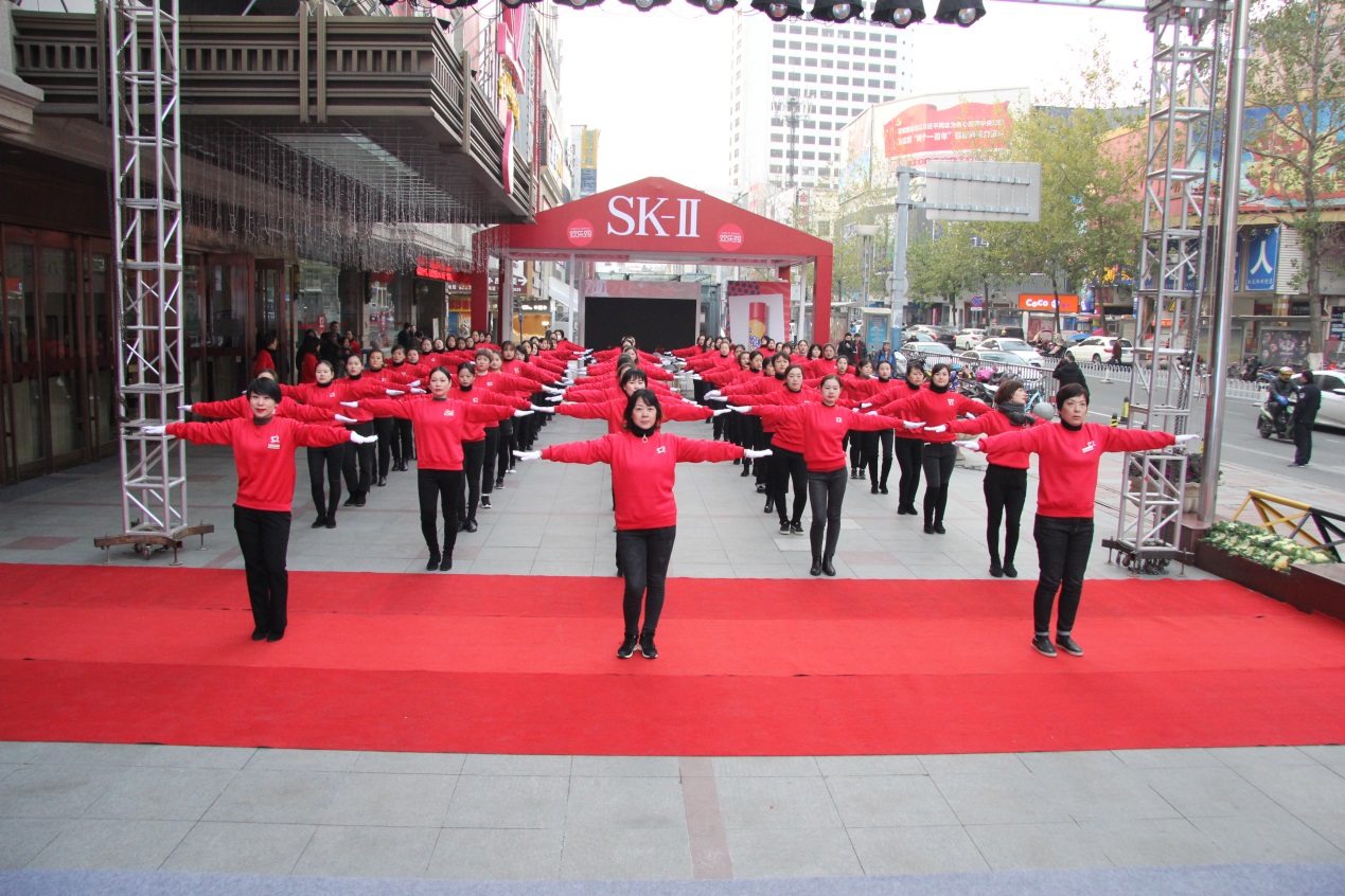 慶典儀式預(yù)熱階段,80名員工齊跳鼓樓名品中心員工健身操。她們時(shí)值芳華,意氣奮發(fā),向社會(huì)展示了新時(shí)代下商業(yè)服務(wù)業(yè)良好的精神風(fēng)貌。