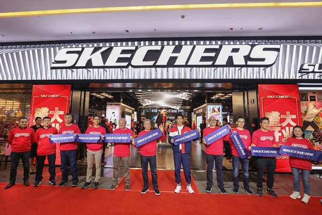 1月19日,斯凱奇中國(guó)最大店鋪在沈陽星摩爾購(gòu)物廣場(chǎng)開出,斯凱奇美國(guó)總裁兼創(chuàng)始人 Michael Greenberg 等高管以及品牌代言人竇驍?shù)榷枷?shù)到場(chǎng)。