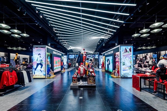 據(jù)了解,斯凱奇沈陽超級(jí)大店是目前國(guó)內(nèi)面積最大的斯凱奇品牌店鋪,整體面積達(dá)到 2982 平方米。整個(gè)店鋪被劃出多個(gè)專屬產(chǎn)品區(qū)域,包括D’Lites、Lifestyle、Performance、Kids等都有獨(dú)立的展示。同時(shí)時(shí)尚大氣的設(shè)計(jì)和現(xiàn)代感十足的產(chǎn)品陳列方式令視覺效果更為直觀且多樣性,充分滿足了消費(fèi)者一站式的購(gòu)物體驗(yàn)。