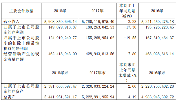 根據(jù)公告,2018年解百實(shí)現(xiàn)營業(yè)收入59.09億元,同比增長2.23%;歸屬于上市公司股東凈利潤為1.49億元,同比下降17.30%。