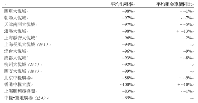 4月24日,大悅城地產(chǎn)發(fā)布了其2019年首季營運(yùn)數(shù)據(jù)。公告顯示,在2019年1-3月報(bào)告期內(nèi),大悅城地產(chǎn)投資物業(yè)運(yùn)營維持高水平,已開業(yè)的大悅城出租率持續(xù)高位運(yùn)營,其中西安大悅城達(dá)到99%,沈陽大悅城平均出租單價(jià)同比實(shí)現(xiàn)雙位數(shù)增長;物業(yè)開發(fā)方面,公司合同銷售總面積約為48,765平方米,合同銷售總金額約人民幣9.01億元。.