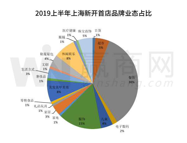 贏商網(wǎng)統(tǒng)計(jì)的《2019上半年上海首店品牌業(yè)態(tài)占比》顯示,餐飲業(yè)態(tài)位居首位,數(shù)量達(dá)42個(gè),占比約36%,其次為服飾業(yè)態(tài),數(shù)量為18個(gè),占比約15%。對此2018年的上海首店品牌業(yè)態(tài)占比來看,餐飲業(yè)態(tài)的數(shù)量雖然上升,但占比有所下降,服飾品牌則在數(shù)量和占比上均呈現(xiàn)上升趨勢。