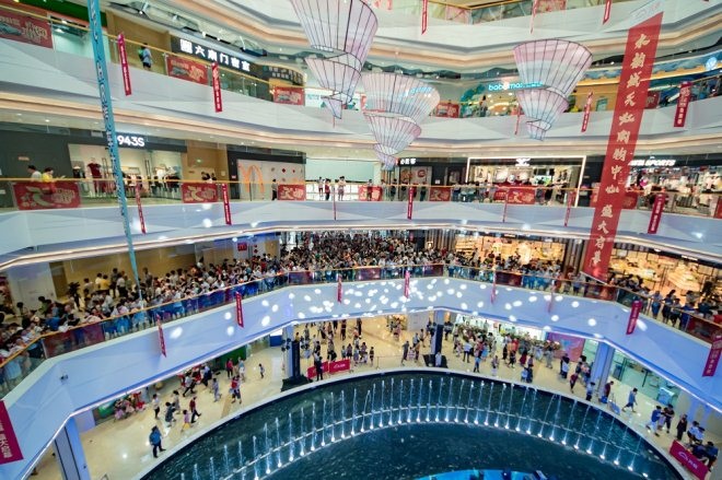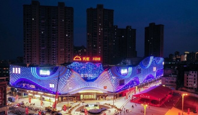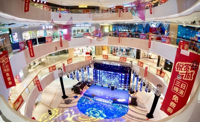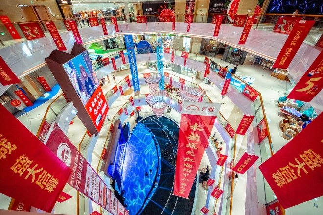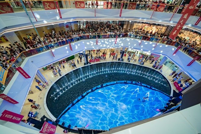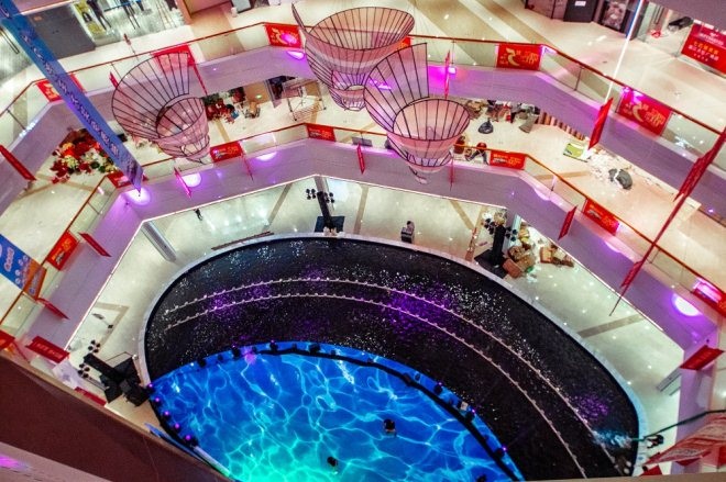 水韻城天虹購物中心以水為主題,打造夢幻水景空間,“水”元素貫穿全場。