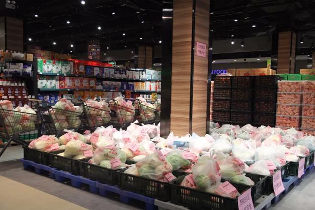 領導一行剛到賣場,正碰上工作人員往公交集團支援的配送車上搬運社區(qū)團購物資,應書記詳細詢問了車輛發(fā)往社區(qū)的路線和時間安排。進入賣場,領導一行仔細查看了團購作業(yè)區(qū):一包包團購套餐規(guī)整打包,整齊列隊,按不同的社區(qū)整齊擺放。領導們詳細聽取工作人員匯報超市與社區(qū)對接團購套餐的工作情況,并俯身查看已打包好的團購物資。